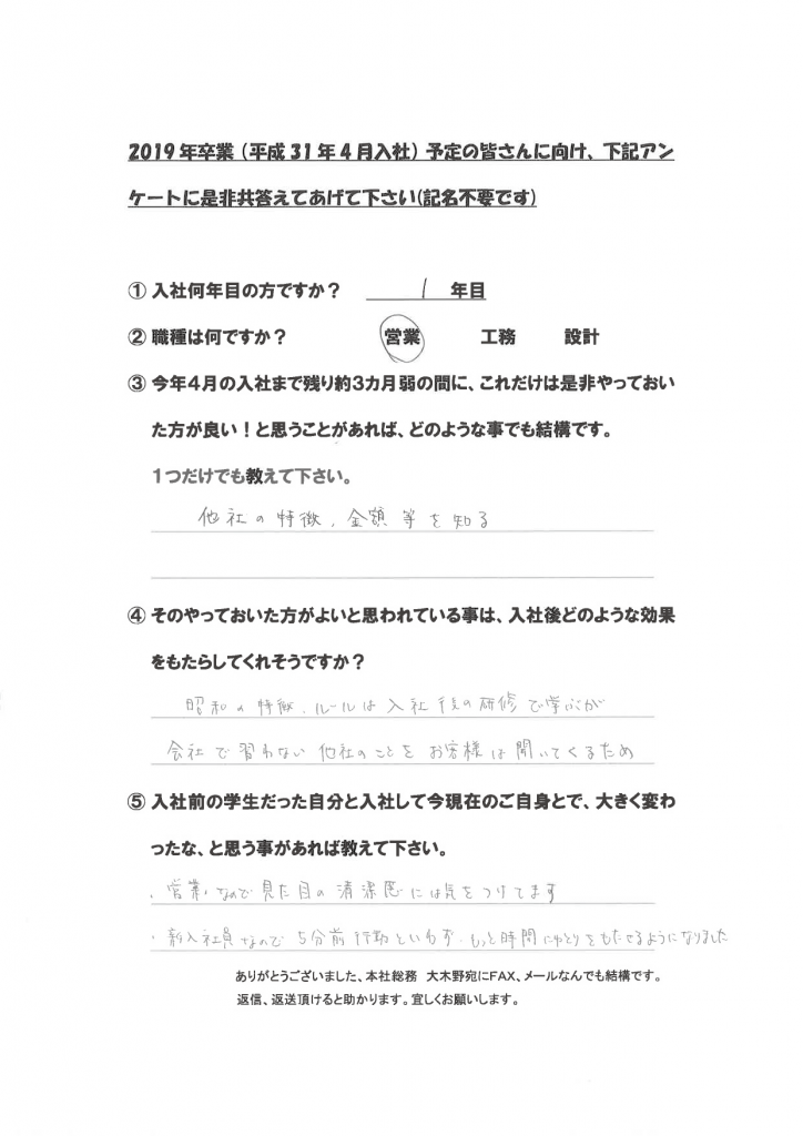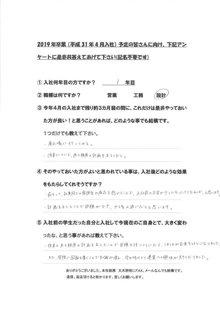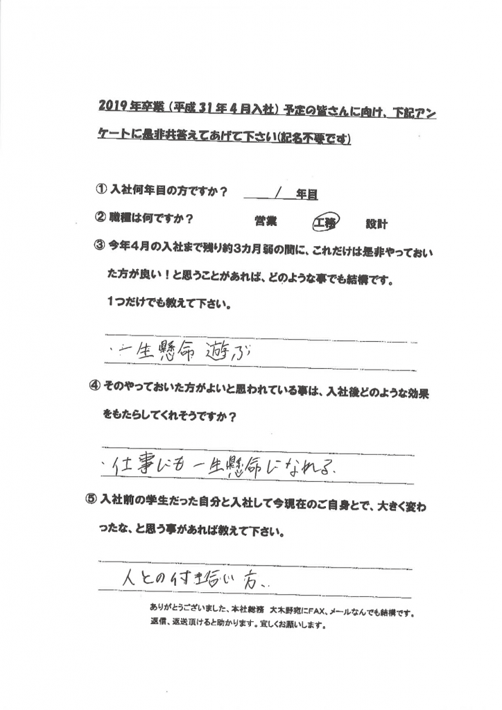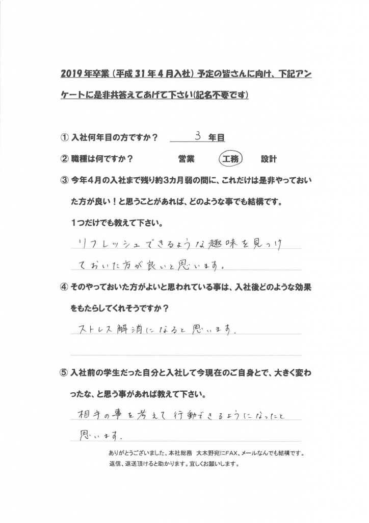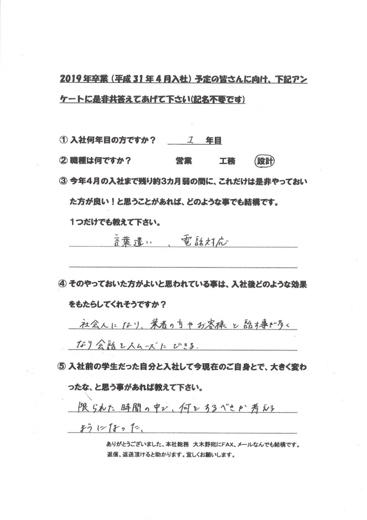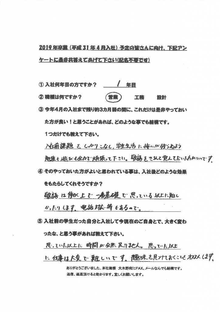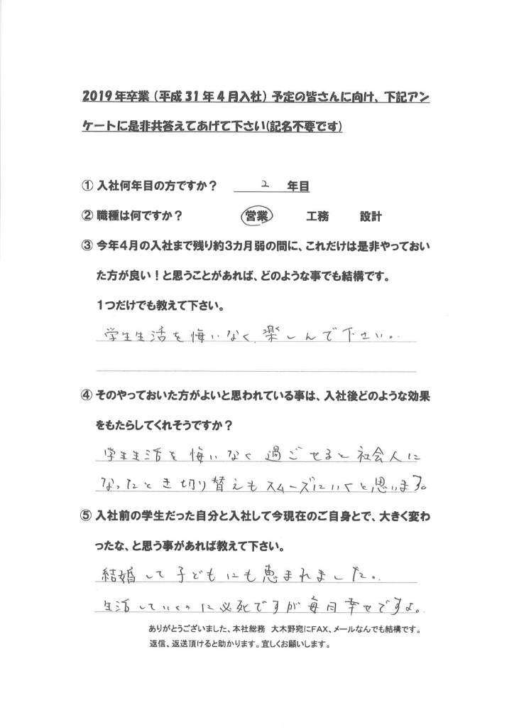 新卒社員の声(学生達に向けて)