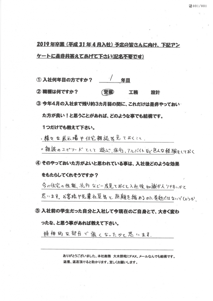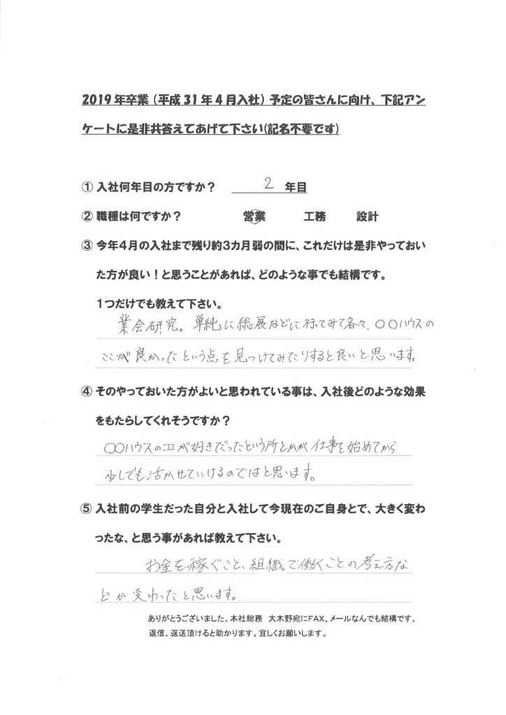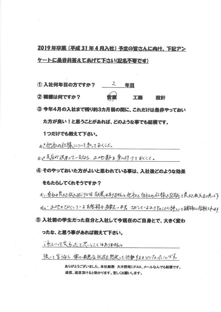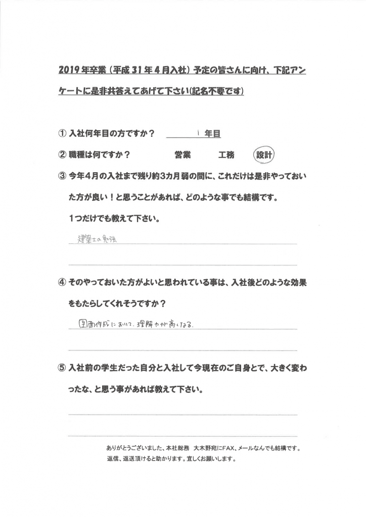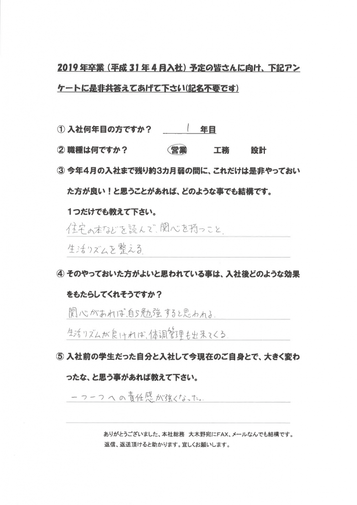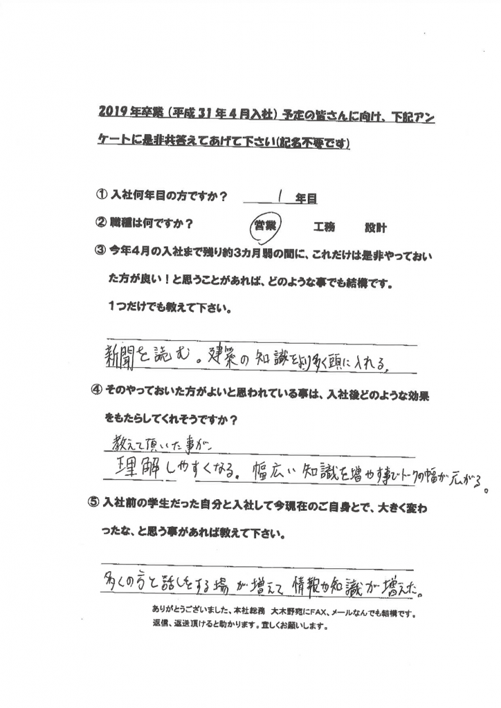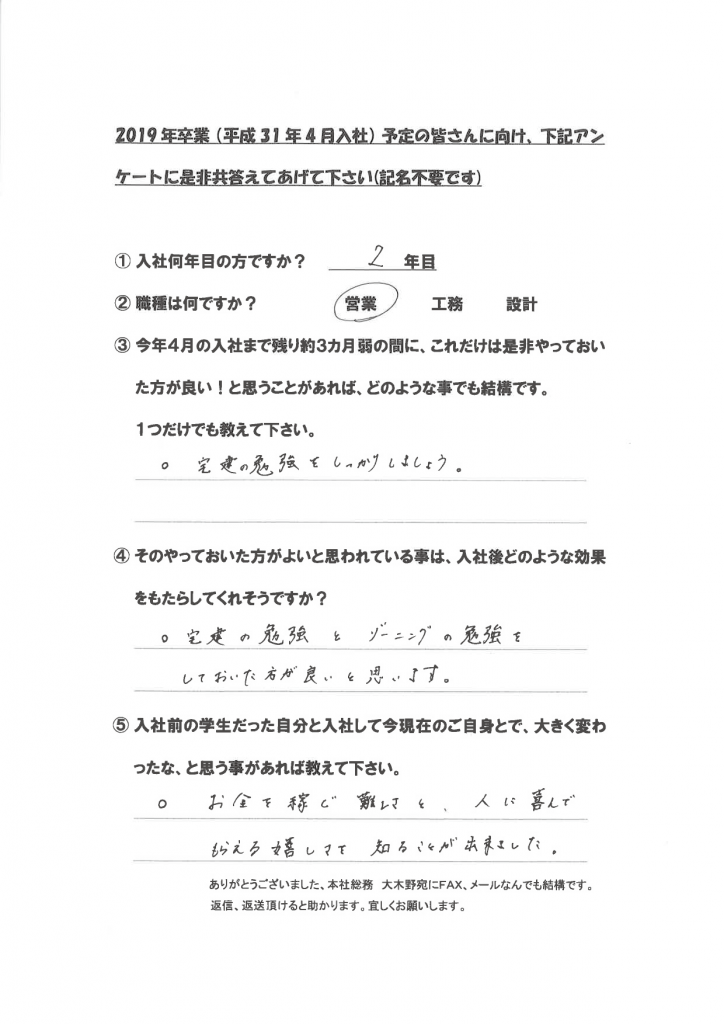 新卒社員の声(学生達に向けて)