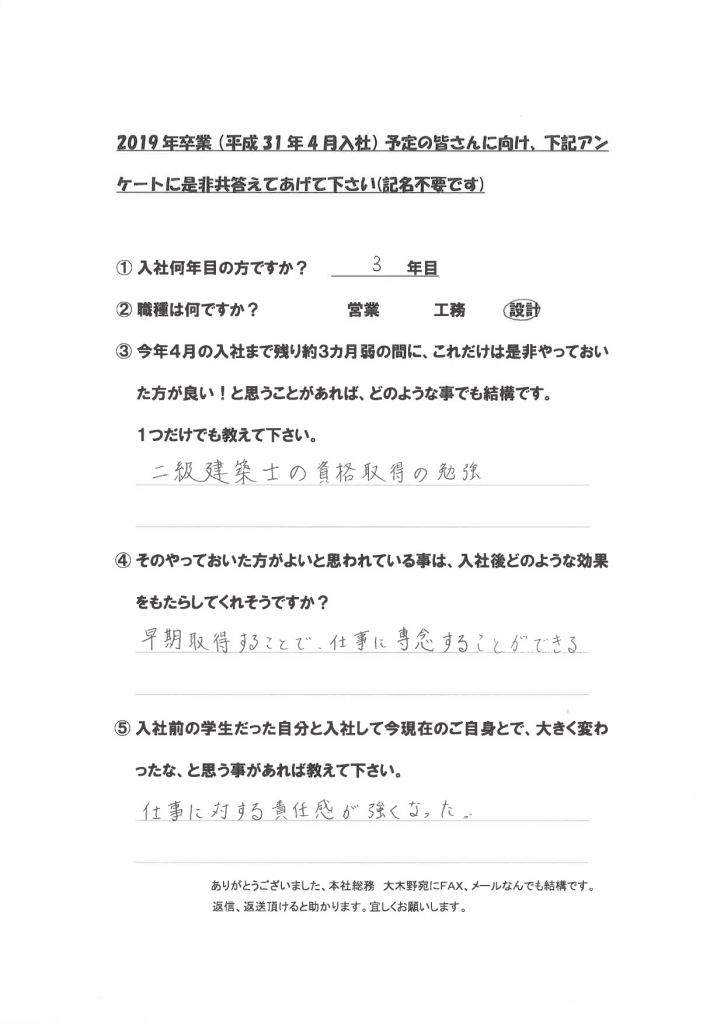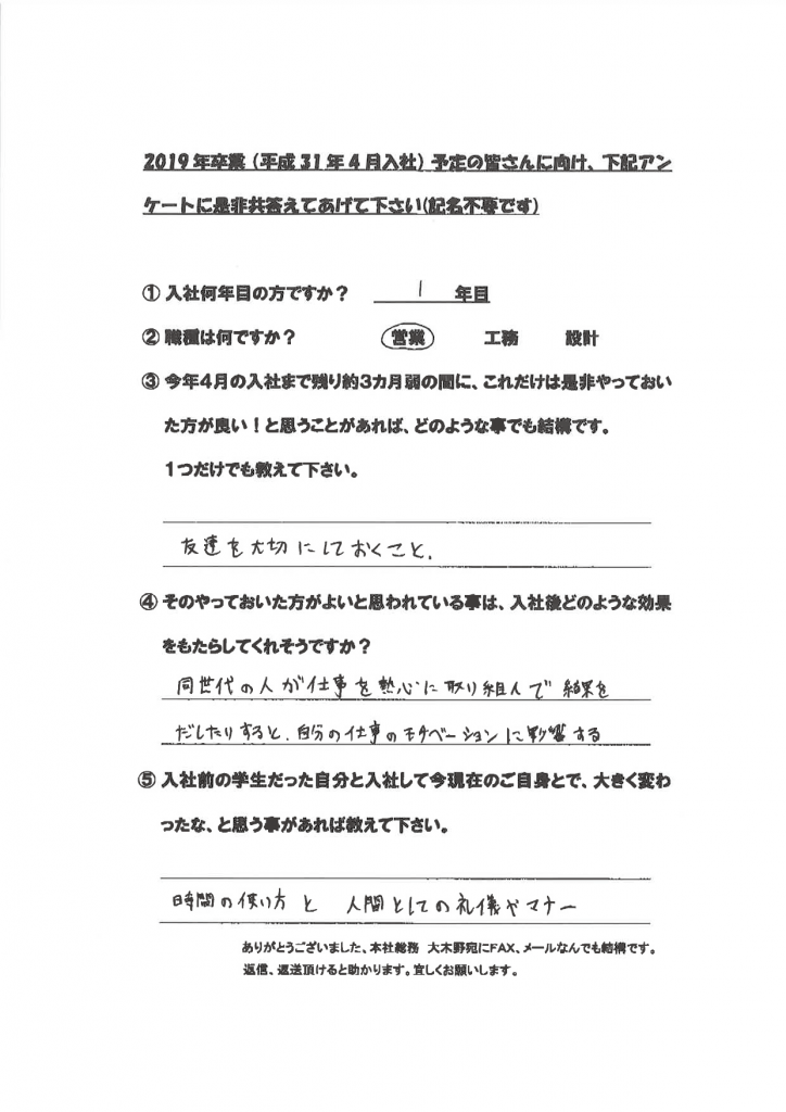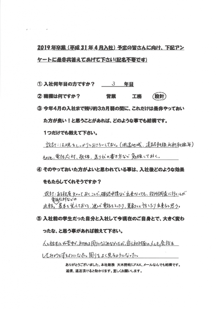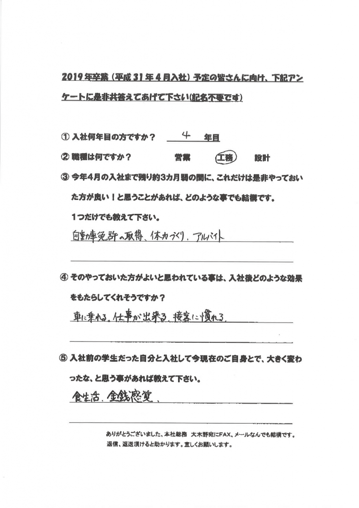 入社1年目~4年目の新卒社員を対象にアンケートを実施しました。