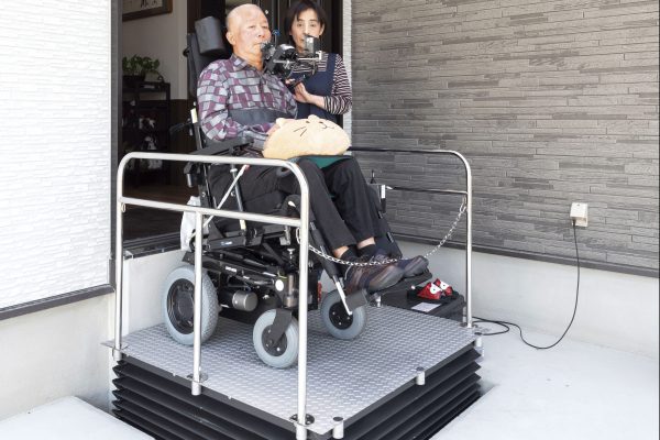 玄関サイドに車イス用の昇降機を設置
