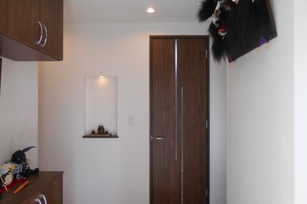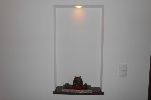 照明のついた玄関の飾り棚